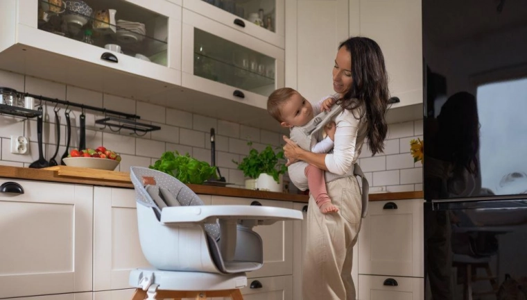 - Posizione ergonomica a M – sicura per lo sviluppo delle anche.