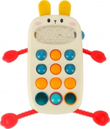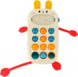 Il telefono–massaggiagengive Bibi-inn è pensato per i piccoli esploratori. I bambini saranno attratti dai pulsanti in gomma con piacevole effetto “pop”, dalla pallina scorrevole e dal mini labirinto con perline, che favoriscono coordinazione occhio–mano e pazienza. Le morbide parti in silicone (laccetti e orecchiette) fungono da massaggiagengive sicuro, calmando il bimbo e allo stesso tempo allenando la presa.
