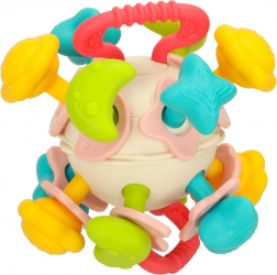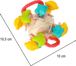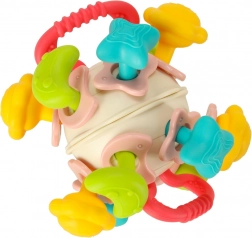 Le parti in silicone fungono da massaggiagengive sicuro, che dona sollievo alle gengive sensibili. La sfera motiva i bambini ad afferrare, ruotare e passare l’oggetto da una mano all’altra, contribuendo allo sviluppo della motricità fine e della coordinazione occhio–mano.
