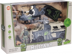 - Equipaggiamento completo: veicolo, elicottero, motoscafo, torre, armi, cane e 2 figurine di soldati