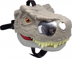 Trasformati in un dinosauro per un momento con questa fantastica maschera! Basta indossarla e ad ogni movimento della testa prenderà vita. La mascella si apre gradualmente in tre posizioni ed ogni posizione attiva un effetto sonoro diverso - dal ringhio al ruggito più debole fino al forte ruggito del dinosauro.