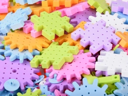 I blocchi sono disponibili in molti colori come blu, verde, rosa, arancione e bianco, il che stimola la creatività e le capacità spaziali dei bambini.