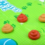 Stendete il tappetino, modellate gli “ostacoli” con la pasta inclusa e indossate la benda. I compagni di gioco fanno girare lo spinner, che determina il numero di passi e le azioni speciali. Il vostro obiettivo è compiere il numero richiesto di passi e non calpestare alcuna “sorpresa”.