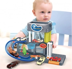 Questo autolavaggio in plastica a due piani trasforma ogni gioco in un'esperienza realistica. I bambini si divertiranno a lavare le macchinine con vera acqua corrente, a spostarle tra i piani tramite ascensore funzionante e a vivere un gran finale con effetti luminosi e sonori. Le spazzole in silicone sono delicate e allo stesso tempo abbastanza resistenti per un gioco ripetuto.