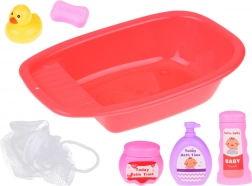 La vaschetta si può riempire d’acqua e godersi un gioco sensoriale con la paperella, la spugnetta e i “cosmetici”. I bambini allenano la cura del bebè e le basi dell’igiene.