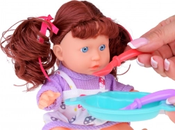 Il biberon, il ciuccio e il piattino con posatine incoraggiano il gioco del pasto e la routine di accudimento. Accessori come il vasino e l’asciugamano completano l’esperienza autentica del ruolo di “piccolo genitore”.