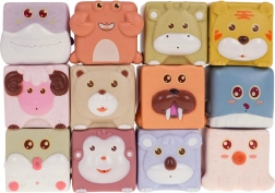 Scopri cubetti sensoriali con animali, progettati per bambini dai 6 mesi per stimolare i sensi e supportare lo sviluppo. Ogni cubetto offre una combinazione unica di colori e texture: