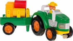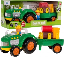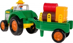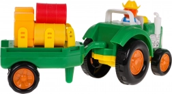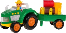 trattore con rimorchio rimovibile, figura del contadino, 3 balle di fieno di vari colori, 2 blocchi di fieno, 3 batterie AG13