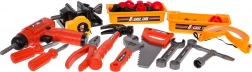 Il set include strumenti realistici in plastica, come trapano, martello, sega e altri, che stimolano l'immaginazione dei bambini.