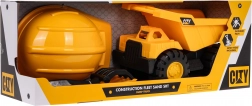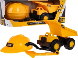 Il set include un casco protettivo e strumenti come paletta e rastrello, garantendo un'esperienza costruttiva completa.