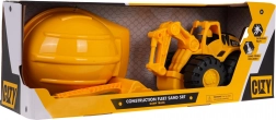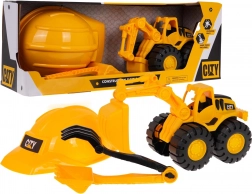 L'escavatore ha un cucchiaio e un braccio mossi manualmente, permettendo un'operazione simile a quella di una macchina reale. Le grandi ruote dell'escavatore consentono il movimento su qualsiasi superficie. Include anche un elmetto che dà la sensazione di essere un vero costruttore.