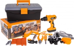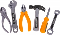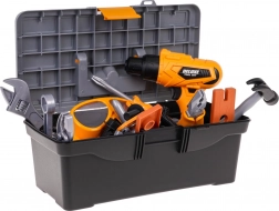 Questo set di attrezzi per bambini offre tutto ciò di cui ha bisogno un piccolo fai-da-te: una grande cassetta per attrezzi, occhiali e mascherina di sicurezza, martelletto, cacciavite, pinze, chiavi e componenti da costruzione con viti e tasselli. Grazie alla plastica di qualità il set è leggero, resistente e ideale per giocare ai professionisti.