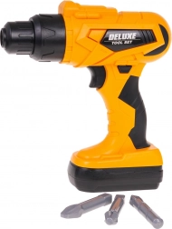 Il trapano realistico avvita e svita, emette suoni, ha punte intercambiabili (piatta, a croce, punta da trapano) e una “batteria” rimovibile. Alimentazione: 2× AA 1,5 V (non incluse).