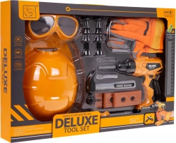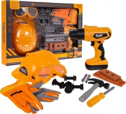 - Casco, guanti, occhiali, martello, cacciavite, 3× tavoletta, 4× accessorio, 4× vite, trapano avvitatore, punte intercambiabili (a taglio, a croce) e punta da trapano