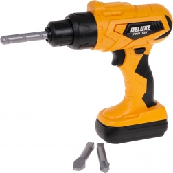 Il trapano per bambini a 2× AA (1,5 V, non incluse) avvita e svita davvero le viti, ha punte intercambiabili e una “batteria” estraibile. Gli effetti sonori intensificano l’esperienza di gioco.