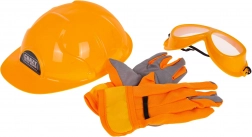 Il casco in plastica, gli occhiali protettivi e i guanti favoriscono abitudini sicure durante il gioco in “cantiere” e donano ai piccoli tuttofare un aspetto professionale e sicuro di sé.