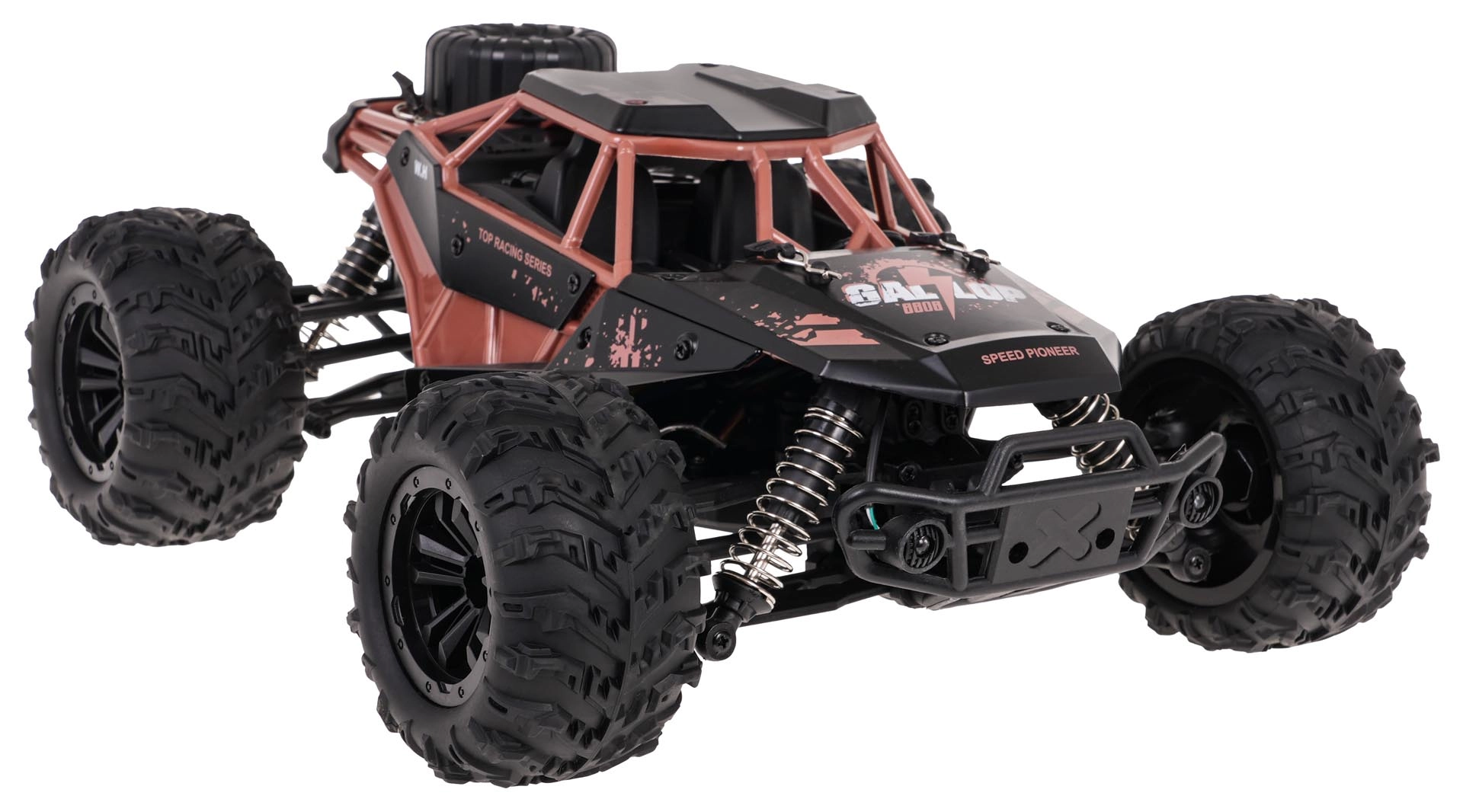 Il resistente RC crawler GALLOP in scala 1:16 offre trazione 4x4, carrozzeria in metallo e sospensioni alte per la guida su terreni impegnativi. Le grandi gomme e l'illuminazione LED garantiscono un’ottima capacità di superamento degli ostacoli anche dopo il tramonto. Il controllo a 2,4 GHz è stabile e privo di interferenze.