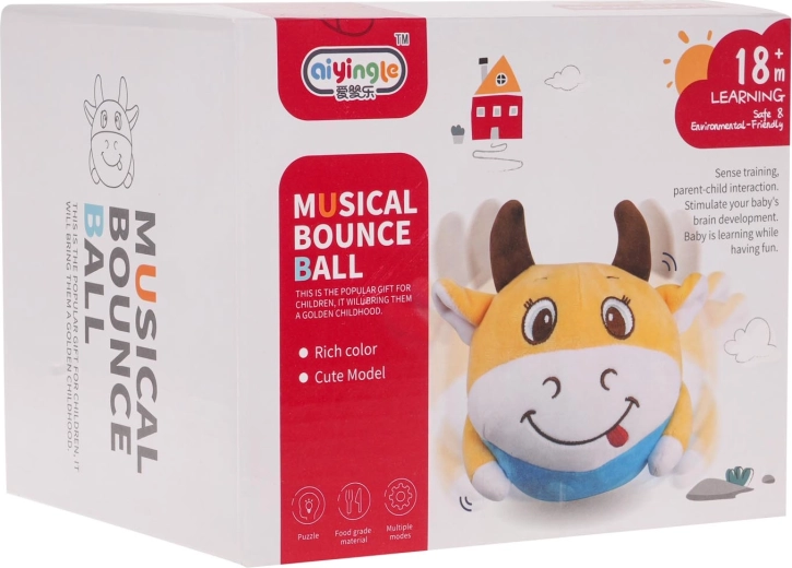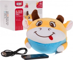 La simpatica mucca saltellante è un morbido peluche interattivo per i più piccoli. All'interno ha un modulo funzionale rotondo estraibile che, una volta accesa, salta, si muove, riproduce melodie e allo stesso tempo si illumina con retroilluminazione verde. Il controllo è semplificato dal telecomando incluso; l'alimentazione è garantita da una batteria ricaricabile con ricarica tramite USB.