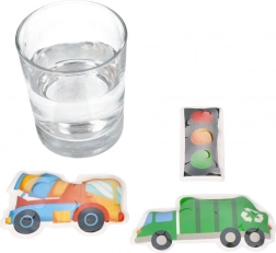 Trasforma ogni bagnetto in un’avventura con gli adesivi da bagno a tema camion, che una volta bagnati cambiano colore all’istante. I bambini ameranno vedere le immagini prendere vita mentre allenano la motricità fine e scoprono il mondo dei mezzi di trasporto.