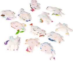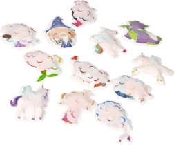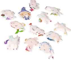 Un set di divertenti adesivi in schiuma con unicorni, maghi e nuvolette porta tanta fantasia nel momento del bagnetto. A contatto con l’acqua gli adesivi cambiano colore e aderiscono perfettamente alle superfici lisce e bagnate (vasca, piastrelle). Al termine del gioco si ripongono facilmente nella reticella traspirante con ventose, che consente un rapido sgocciolamento e asciugatura.