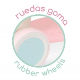 Le ruote gommate garantiscono scorrevolezza silenziosa e ottimo grip. La struttura stabile a quattro ruote supporta l’equilibrio dei principianti.