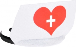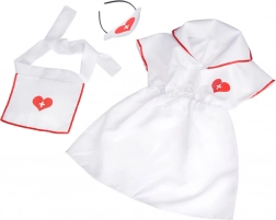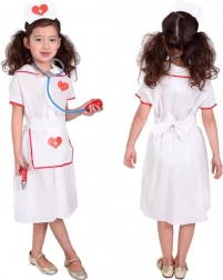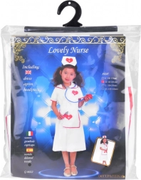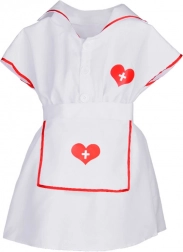 L’abito bianco con bordi rossi, i cuoricini con la croce e il grembiulino creano il classico look da infermiera che i bambini adorano.