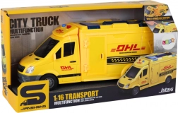 Il nostro furgoncino giallo in scala 1:16 è il giocattolo ideale per tutti i bambini curiosi. Grazie alla trazione a frizione il veicolo si muove con facilità e stimola l'immaginazione del bambino nel gioco di consegna dei pacchi. È dotato di funzioni interattive che includono effetti luminosi e sonori, perfetti sia per il gioco in casa che all'aperto.