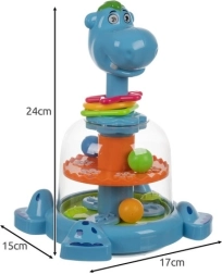 Ippopotamo con giostra per bambini offre divertimento e gioco interattivo per bambini dai 12 mesi. Questo giocattolo colorato aiuta a sviluppare la motricità fine e la coordinazione occhio-mano, permettendo al bambino di imparare attraverso il movimento e il suono.