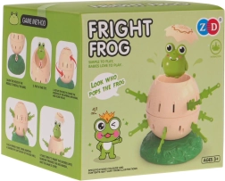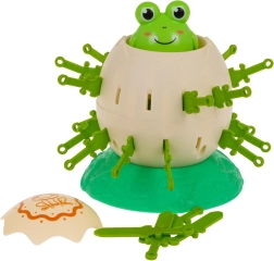 Posiziona l’uovo sulla base, nascondi la ranocchia all’interno e prepara i bastoncini. I giocatori si alternano inserendo i bastoncini nei fori dell’uovo – ma attenzione a non toccare la rana! Quando si attiva il meccanismo, la rana può saltare fuori all’improvviso come da una fionda.