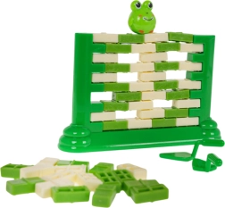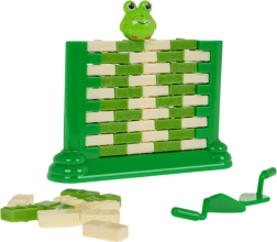 Divertente gioco di abilità per bambini dai 3 anni in su, in cui si costruisce un muro con “mattoncini” e, con l’aiuto di un piccolo cucchiaio, si spingono via con cautela i singoli pezzi. In cima siede una figurina di rana: l’obiettivo è che non cada. Il gioco sviluppa concentrazione, pensiero logico e coordinazione mano-occhio, offrendo allo stesso tempo grande divertimento per tutta la famiglia.