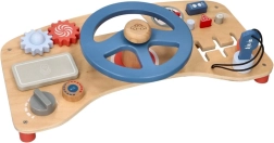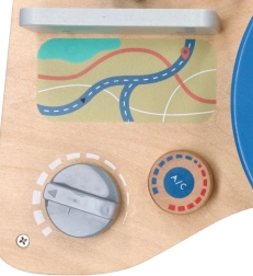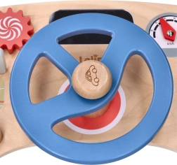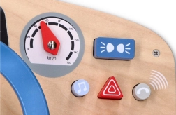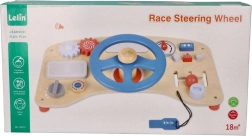 Presentiamo il volante in legno, ideale per bambini dai 18 mesi in su. Questo giocattolo non necessita di batterie ed è dotato di un clacson e di un pulsante a scatto, offrendo un'esperienza di guida realistica.