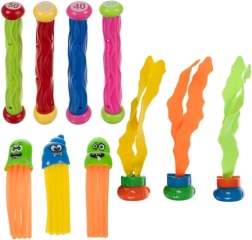 Questo set completo per immersioni e giochi in acqua è progettato per il divertimento e lo sviluppo delle abilità natatorie. Grazie ai colori vivaci e alle forme diverse, i bambini trovano facilmente gli oggetti sott’acqua, allenano orientamento, immersione e coordinazione. Le marcature con punteggio su alcuni pezzi favoriscono una sana competitività e creano molteplici scenari di gioco.
