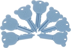 Le chiavi uniche a forma di orsetto sono numerate e si adattano sempre a un solo veicolo: sviluppano logica e coordinazione.
