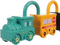 Questo ingegnoso giocattolo educativo unisce divertimento e apprendimento. Ogni veicolo è un lucchetto e ha la sua chiave a forma di orsetto con il numero in rilievo 0–5. Il bambino allena naturalmente la motricità fine, il pensiero logico e il riconoscimento dei numeri. La parte superiore del lucchetto ruota a 360°, e dopo lo sblocco corretto i veicoli si collegano facilmente in un lungo trenino.