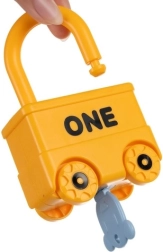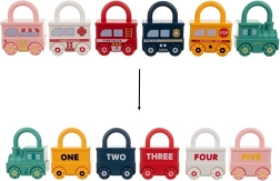 Un set colorato con sei veicoli e una locomotiva a forma di lucchetto con chiavi insegna ai bambini i numeri 0–5 e i colori. Plastica ABS sicura, bordi lisci e arrotondati, chiavi uniche numerate e la possibilità di collegare i veicoli in un trenino rendono questo gioco la scelta ideale per bambini da 18 mesi in su.