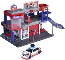 Scopri il garage di tuning a due piani in edizione limitata Japan Series del marchio Majorette con luci e suoni, ascensore manuale, lanciatore ed elementi apribili. Inclusa una riproduzione con licenza HONDA Civic Type R EK9 in scala 1:64, ideale per i piccoli appassionati di auto.