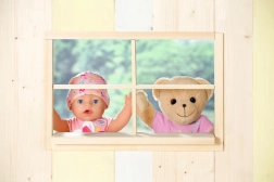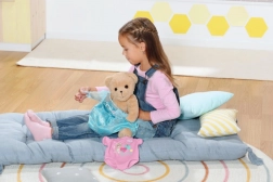 All’orsetto va bene la maggior parte dei vestitini per le bambole BABY born da 43 cm (tranne le scarpine) e può usare i loro accessori.