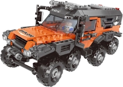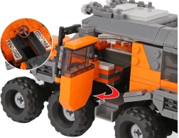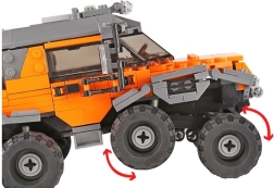 Questo fantastico set di costruzione è pensato per assemblare un veicolo fuoristrada. I blocchi ti permettono di costruire un veicolo a 8 ruote per missioni speciali. Il bello è che, una volta montato, l'auto ha parti mobili. I blocchi tecnici nei colori arancione e nero sono stati realizzati in modo molto accattivante.