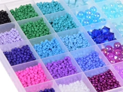 Il set è confezionato in un pratico contenitore trasparente a forma di valigetta, suddiviso in scomparti che evitano la miscelazione delle perline. Il set include anche 2 bobine di filo trasparente e forbici, permettendo di iniziare subito a lavorare sui gioielli desiderati.