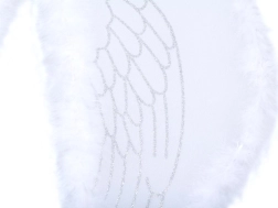 Queste ali permettono ai bambini di trasformarsi in un angelo, farfalla, fata o un altro personaggio fiabesco. La struttura delle ali è in filo, con un riempimento in materiale elastico e morbido. La superficie è ricoperta di applicazioni in broccato e i bordi sono bordati con pelliccia bianca.