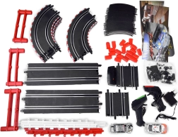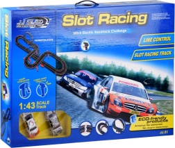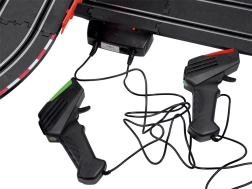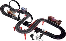 La pista da corsa di 912 cm è realizzata in scala 1:43, garantendo un aspetto realistico. Due macchinine ad alta velocità restano perfettamente sul tracciato. Il controllo delle macchinine avviene tramite due joystick, che permettono la regolazione della velocità. Il divertimento è garantito senza bisogno di batterie, le macchinine sono alimentate tramite un adattatore.
