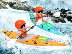 Questo kayak retroilluminato con la figurina realistica del canoista offre un divertimento affascinante e interattivo per bambini di tutte le età. Grazie alla costruzione in plastica e ai materiali impermeabili, è ideale per giocare sia dentro che fuori.