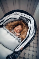 Il sacco invernale MoMi è inoltre dotato di cerniera per un facile accesso e un design universale adatto a seggiolini auto, passeggini e slitte.