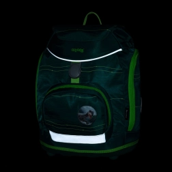 Scomparto principale con cordino e chiusura magnetica, divisorio interno, tasche laterali con zip e tasca frontale per la merenda. Gli elementi riflettenti aumentano la visibilità nel tragitto verso la scuola.