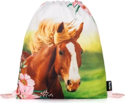 L’astuccio a due alette offre passanti elastici ordinati per le penne e una tasca trasparente per l’orario. La sacca con cordini è leggera, resistente e perfetta per abbigliamento sportivo, pantofole e attività del tempo libero. L’intero set è unificato da un attraente motivo floreale con cavallo che entusiasmerà i bambini.