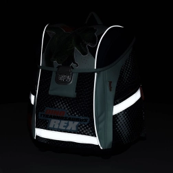 Set scolastico leggero ed ergonomico per i più piccoli con il popolare motivo T-Rex. Include uno zaino alleggerito da 900 g con imbottitura traspirante e cinturino pettorale, oltre a una sacca pratica per ginnastica e un astuccio a un piano senza contenuto. Il set offre tante tasche, un divisorio interno e elementi riflettenti per la sicurezza nel tragitto da e verso la scuola.