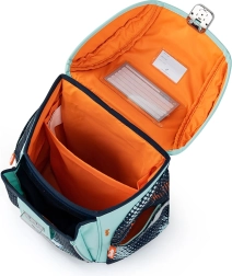 Il divisorio interno, le numerose tasche e la disposizione ordinata facilitano la preparazione dello zaino. Gli elementi riflettenti assicurano una migliore visibilità nel percorso da e verso la scuola.