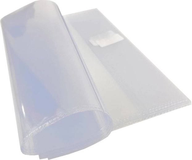 Pratica custodia universale in polipropilene, dimensioni 262x540 mm, ideale per proteggere quaderni e documenti. La superficie trasparente e lucida garantisce la visibilità del contenuto, mentre la striscia autoadesiva consente una chiusura semplice.