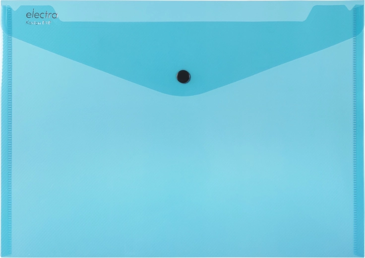 Elegante busta A4 ELECTRA con bottone a pressione in polipropilene 220 µm per il trasporto e l’archiviazione sicuri dei documenti. Offre chiusura a bottone, formato A4, alta brillantezza ed è fornita in confezione da 5 pz.