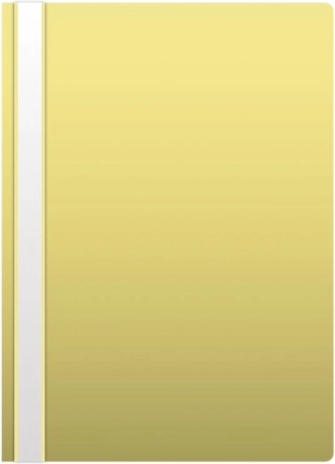 Pratico raccoglitore rapido per documenti formato A4 con combinazione di copertina anteriore trasparente (120 micron) e retro opaco giallo (180 micron). Offre un dorsetto scrivibile e una capacità fino a 2 cm, ideale per archiviare documenti in modo ordinato e veloce sia in ufficio che a casa.